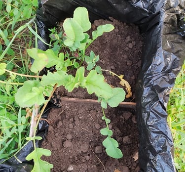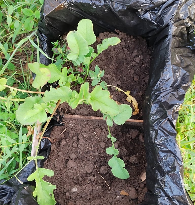 El rábano que sembramos creció y el profe nos dijo que le pusiéramos mas tierra